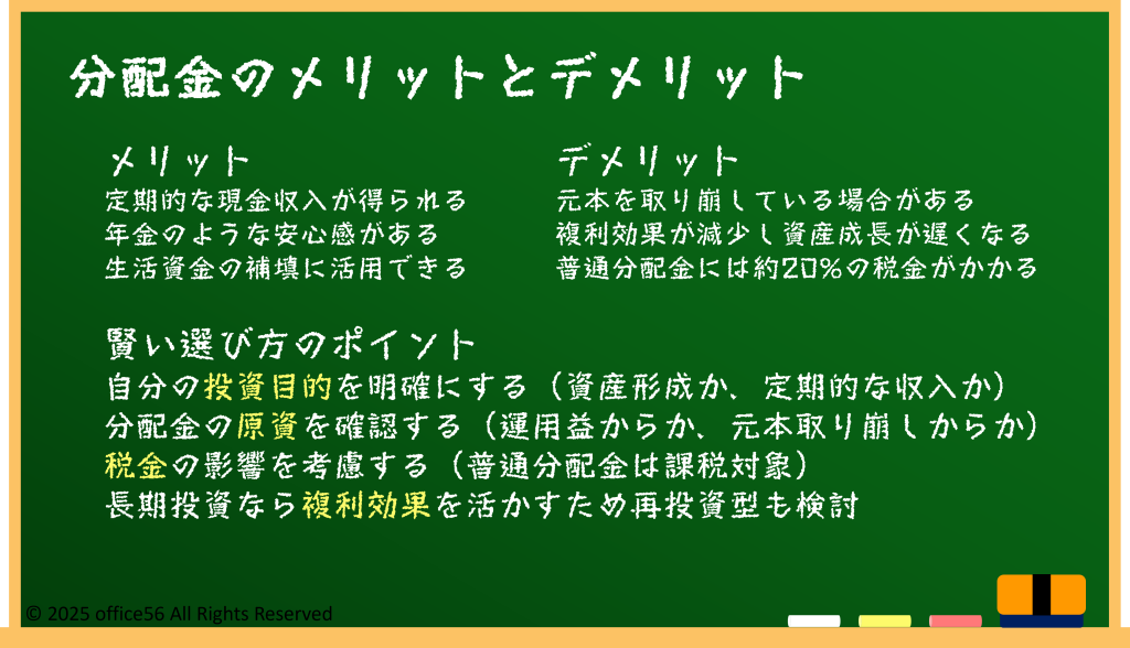 分配金を重視するか、将来の成長を優先するかは、自分の目的によって選ぶ必要がありますね。