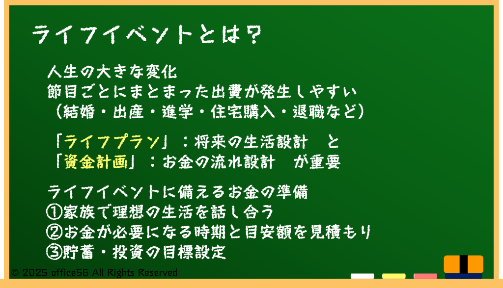これらの「ライフイベント」は避けて通れないため、計画的に準備しておくことが大切です。