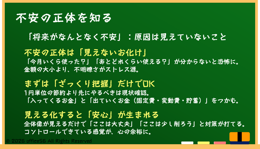 しかし、不安の正体は「収入が少ないこと」そのものではなく、「お金の流れが見えていないこと」である場合が少なくありません。